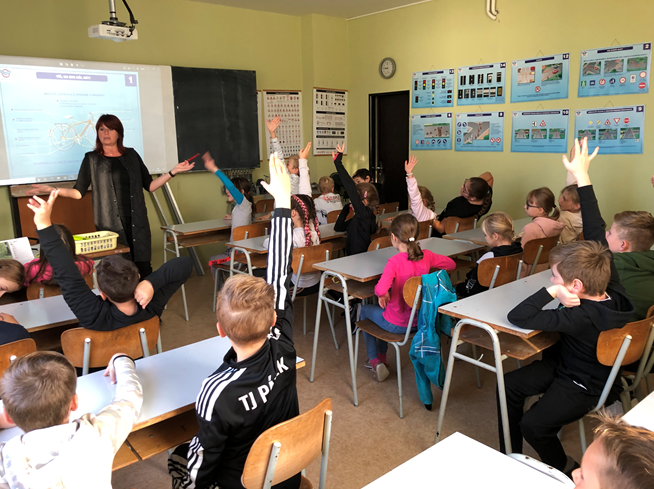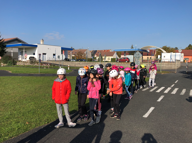 Na konci října absolvovaly naše čtvrté ročníky první návštěvu nymburského hřiště v Drahelicích, kde si každý na vlastní kůži mohl vyzkoušet jízdu na kole podle pravidel. Žáci ve volných chvílích jezdívají v doprovodu rodičů na výlety, ale pouze po cyklostezkách! Chybí jim tolik potřebné zkušenosti ve skutečném provozu. Byla to hra, skoro jako ve skutečnosti. Jen místo pokut za přestupek, nedání přednosti a vjetí do protisměru to nekončilo fatálně, nýbrž uvědoměním si chyby a následným poučením. Místo jízdy z kola sesedli a i tady se učili, jak se kolo správně vede. Celé dopoledne museli být ve střehu. Nejprve v učebně při opakování teoretických znalostí a poté v koordinaci, kde vše převedli do praxe. Jízdu na kole ovládá většina, ale sledovat u ní dopravní značení, řešit a rozhodovat se ve vteřinách v dané situaci v provozu, před křižovatkou se správně ohlédnout, ukázat směr jízdy paží a odbočit, aniž bych ohrozil jiného účastníka, nebylo vůbec jednoduché. Bez těchto praktických zkušeností to nejde. Je potřeba trénovat. Proto do jara mají žáci čas vše nacvičit, jezdit a učit se, aby zvládli udělat testy a získat tak průkaz cyklisty.