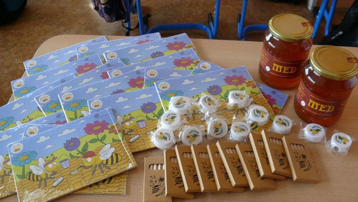 I přes dárky s včelí tematikou, které jsme dostali, jsme se nejvíce těšili na medovou svačinu. Nenašel se jediný žák, který by neochutnal tekuté zlato od našich včel.