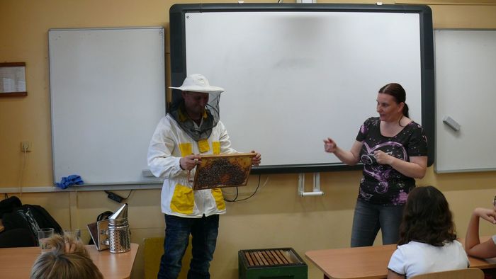 Na naší škole využili možnost nahlédnout do života včel žáci pátých ročníků. Lektorka paní Novotná zábavnou interaktivní formou přiblížila žákům reálné pracovní pomůcky včelaře, poukázala na význam medu pro zdraví člověka, poučila nás o ohrožení včelstev a také nám poradila jak postupovat při bodnutí včelou. Dále jsme se dozvěděli, že včely slaví svůj svátek 20. května, kdy byl Valným shromážděním OSN v roce 2018 tento den stanoven jako Světový den včel.