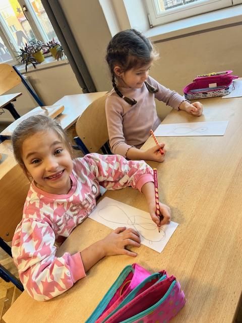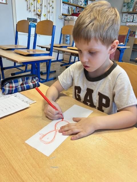 Zvládnout připravený pracovní list na pekelné počítání, vytleskávání slov, jednoduchý taneček, písničku a básničku s pohybem nebyl pro naše předškoláky žádný problém. Byl tedy čas procvičit i grafomotorické cvičení a zaběhat si v tělocvičně "Čertí honičku".