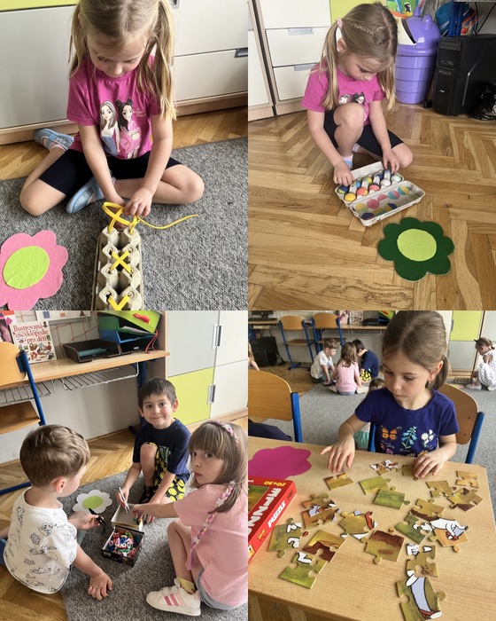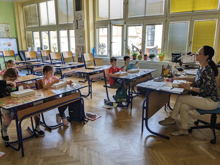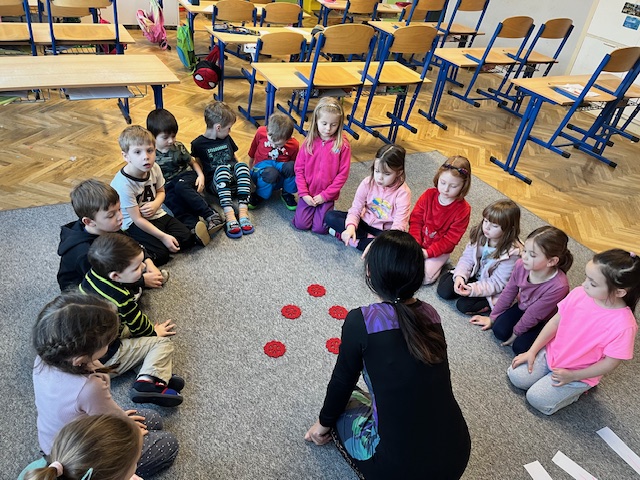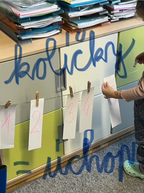 Na květnovém Předškoláčkovi jsme pracovali s početním divadélkem, kde jsme rozvíjeli slovní zásobu, vyprávění příběhů, učili jsme se pracovat s instrukcemi a tvořili jsme kreslený diktát, při němž jsme rozvíjeli orientaci v prostoru.