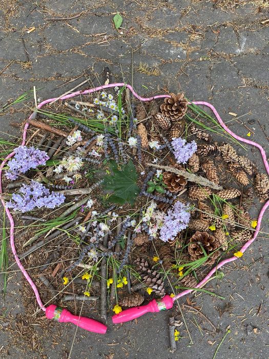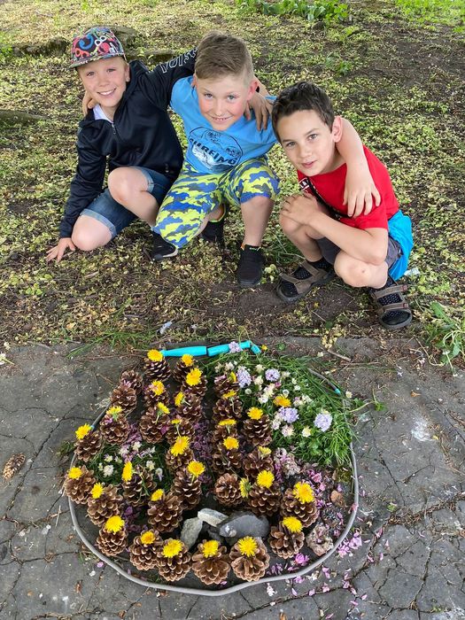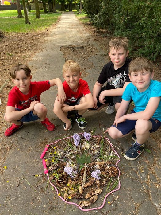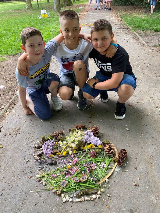 Stačí se v den, kdy je pěkné počasí porozhlédnout po šiškách, listech, kamíncích, větvičkách a třeba květech, upustit fantazii a tvořit. Z přírodnin jsme společně ve skupinkách s kamarády vytvořili mandaly a moc nás to bavilo.