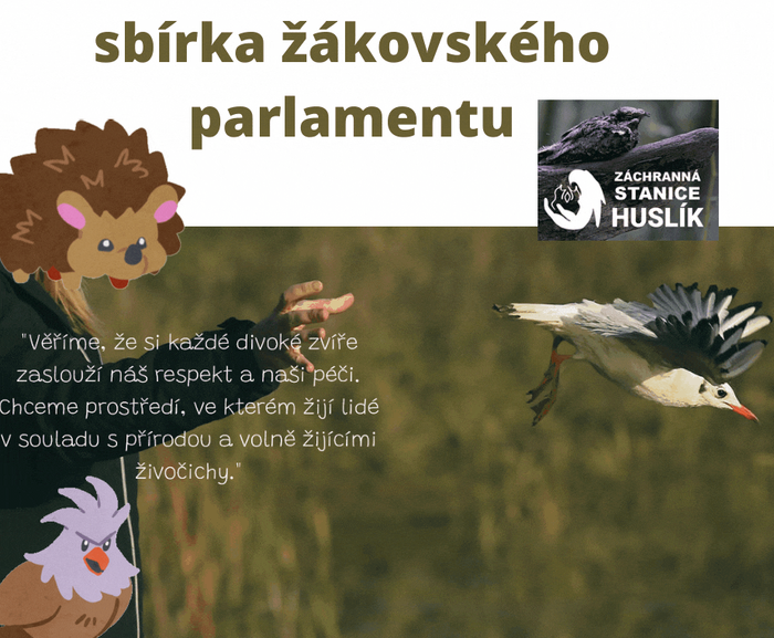 Ve dnech 8. - 11. 11. 2021 pořádal žákovský parlament sbírku pro záchrannou stanici na Huslíku. Podařilo se nám naplnit dvě auta potřebnými věcmi a krmivem. DĚKUJEME VŠEM, kteří se zapojili.