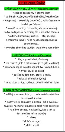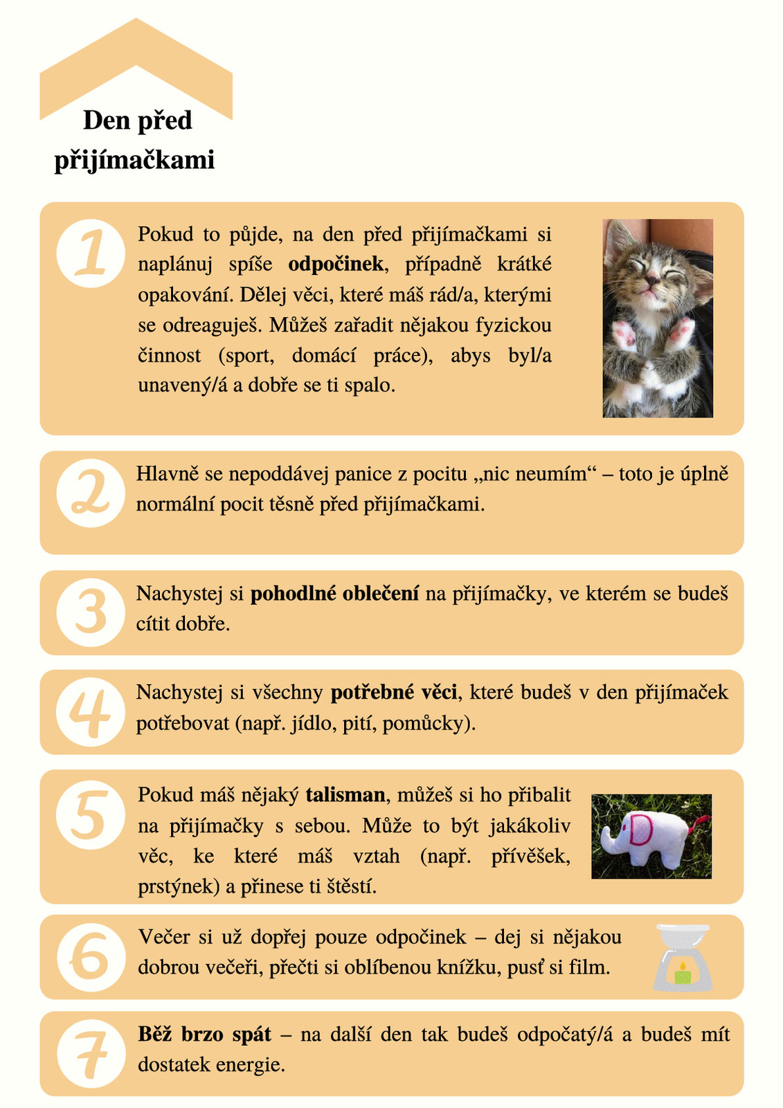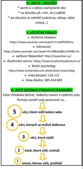 V přílohách zprávy najdete letáčky s psychologickou pomocí - Jak zvládnout nervozitu, co dělat den před přijímačkami, SOS ke zkouškám.