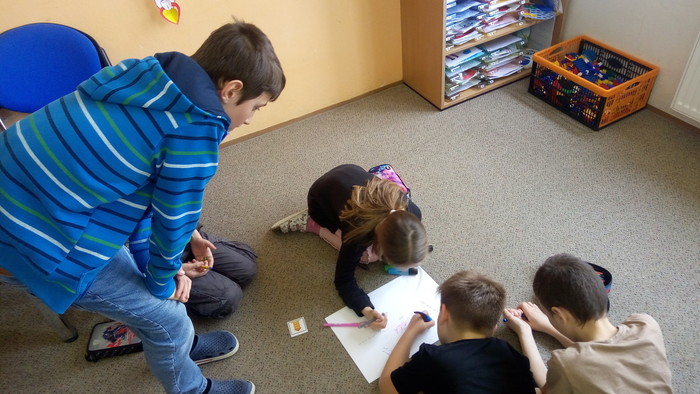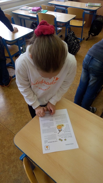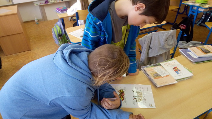 Učili jsme se úplně sami. Dva týmy se musely dohodnout na postupu práce, na rozdělení rolí a na výrobě plakátu. Každý tým dostal malé karty, které pátrače opravňovaly k získávání informací z výukových listů umístěných po třídě. Informace nosili žáci do svých týmů, skládali je a vytvářeli plakát. Prezentace plakátů nás čekala příští hodinu.