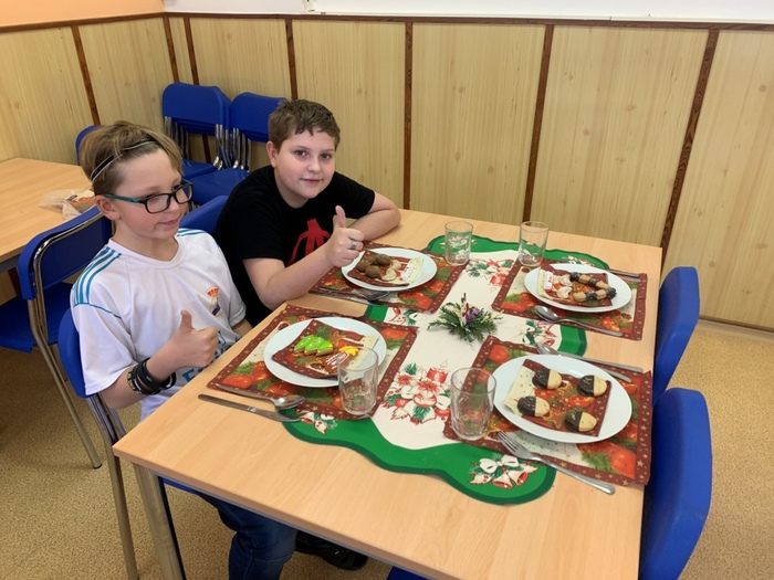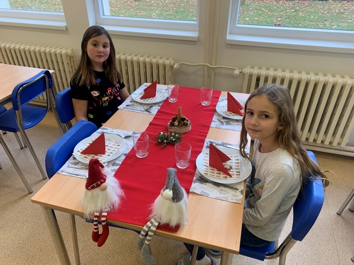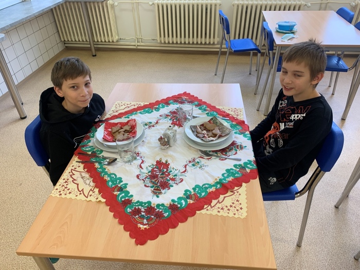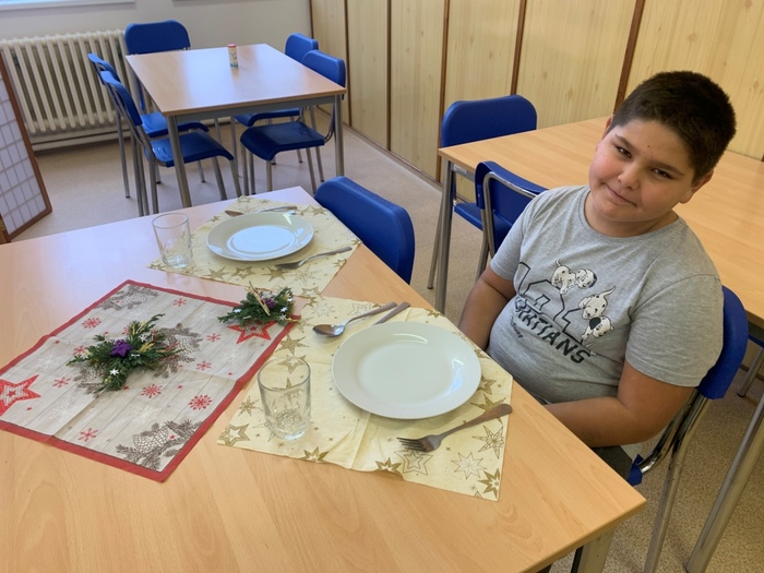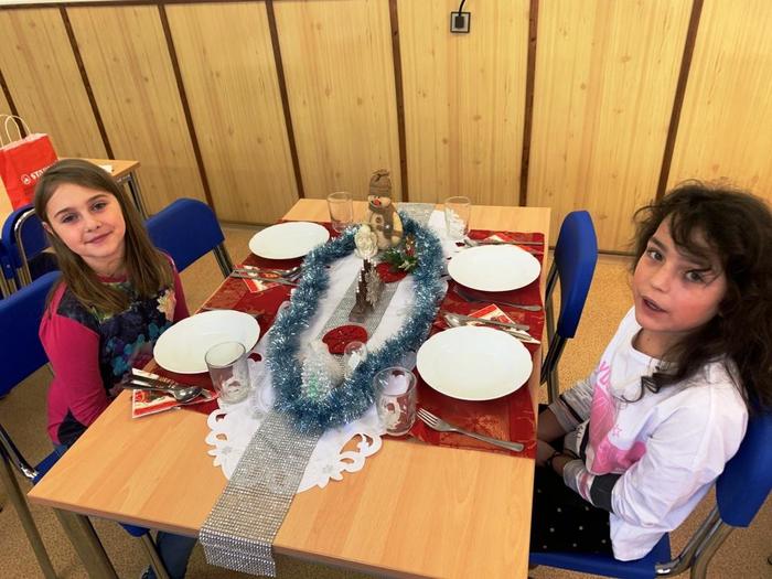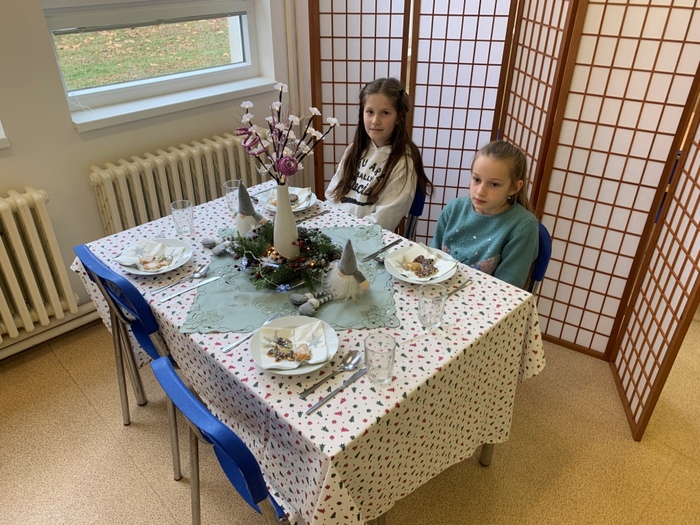 V rámci hodin pracovního vyučování se žáci třídy 4.B seznámili se zásadami správného stolování. Prakticky si zkusili připravit vánočně prostřený stůl. Do příprav se zapojili všichni žáci s nadšením. Přinesli si ubrusy, svícny, ubrousky, cukroví, svíčky, vázy. Talíře a skleničky jim zapůjčily paní kuchařky ze školní jídelny na Žižkově. Společnými silami se nám podařilo navodit tu pravou vánoční atmosféru.