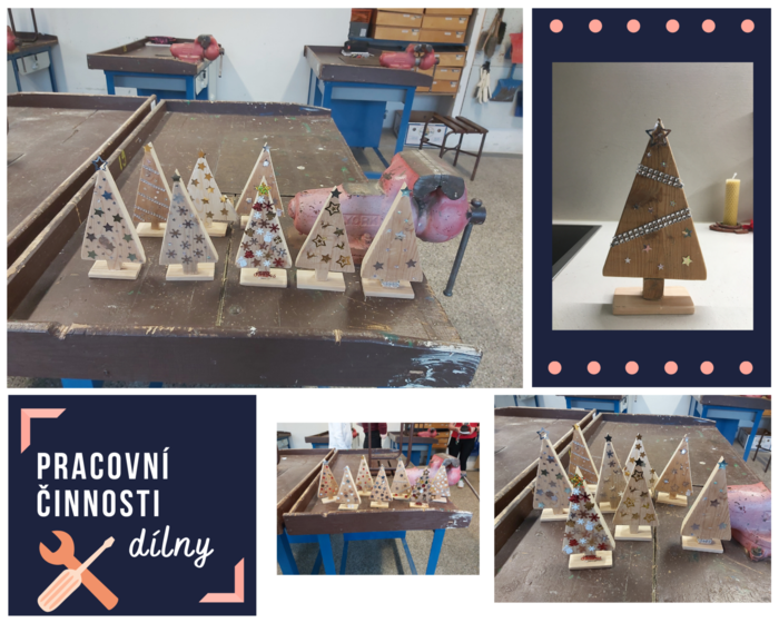 Pracovní činnosti patří mezi samozřejmou součást výchovně vzdělávacího procesu. Každý rok na žáky čeká určitá oblast. Pracujeme i v našich dílnách, kam se děvčata dostanou v devátém ročníku. Letos žákyně 9. C a 9. D vyráběly v předvánočním čase dřevěné zdobené stromečky. Myslíme, že se jim skutečně povedly! :-)