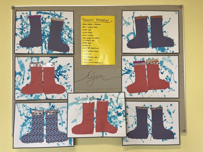 Říjen byl ve znamení seznamování s houbami a podzimní krajinou okolo nás. Četli jsme knihu od Radomíra Socha: Houbové království. Děti se seznámily s jedlými i nejedlými druhy hub. Nechyběla ani procházka za účelem sbírání listů a kaštanů. Z vylisovaných listů děti vytvořily velice povedené výrobky. Zpívali jsme píseň od Zdeňka Svěráka - Datel.