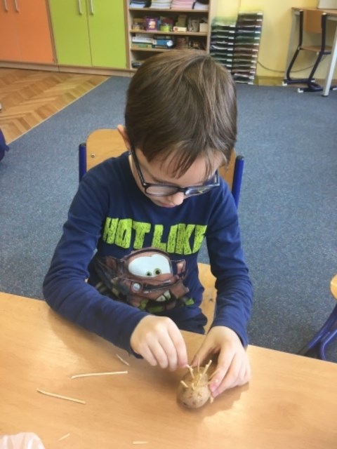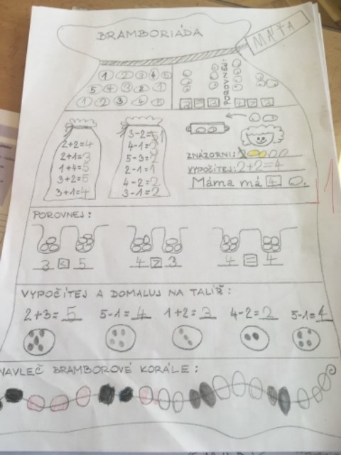 Jedno téma prolínalo všemi předměty: v českém jazyce žáčci recitovali básničky, hádali hádanky, uvolňovali ruku, vytleskávali a zaznamenávali slabiky, vyhledávali písmena, skládali slabiky a slova. Říkadla o bramborách byla motivací pro spoustu činností, třeba v matematice, kde potom s názorem počítali, porovnávali, pracovali na slovních úlohách. V tvořivých aktivitách využili tyto plodiny k výrobě ježků a razítek. Tuto velmi chutnou zeleninu také modelovali. O bramborách se celý týden zpívalo, improvizovalo a v prvouce si žáci nakonec všechny znalosti propojili s pozorováním, popisem a pokusy.
