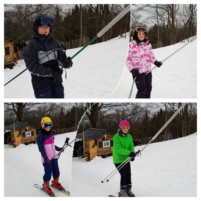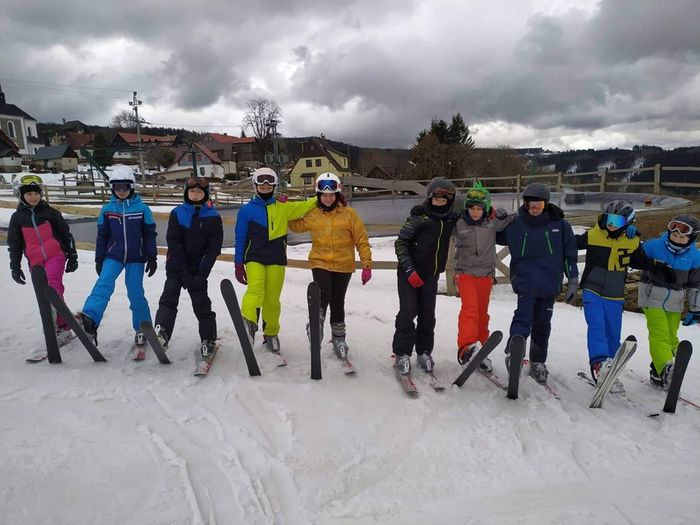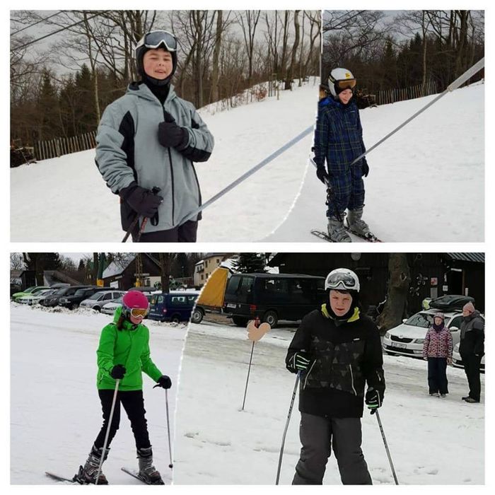 První skupina se učí sjezd na krátkých lyžích. Skupina číslo dvě napojuje dva carvingové oblouky. Členové třetí skupinky zvládli v úterý poprvé výjezd na vleku.