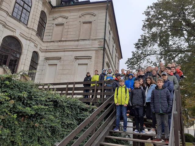 V tento den žáci navštívili i zámek Karlova koruna v Chlumci nad Cidlinou, který řadíme mezi nejvýznamnější barokní stavby u nás. Zde byly žákům přiblíženy dějiny rodu Kinských.