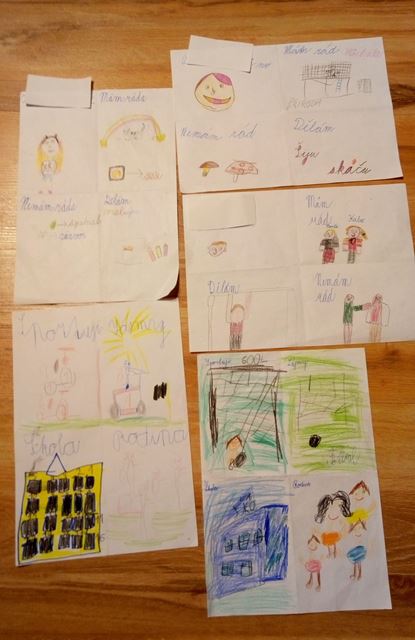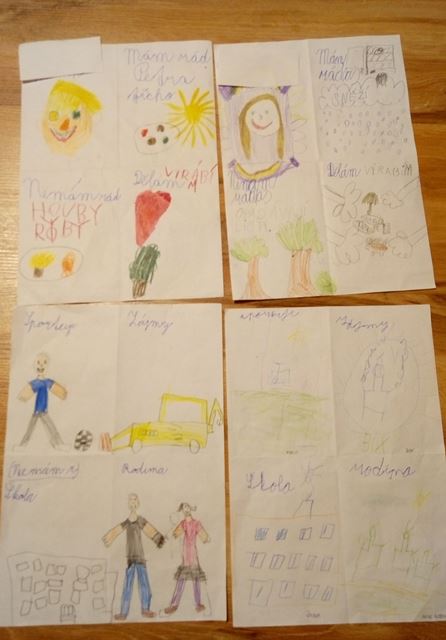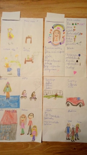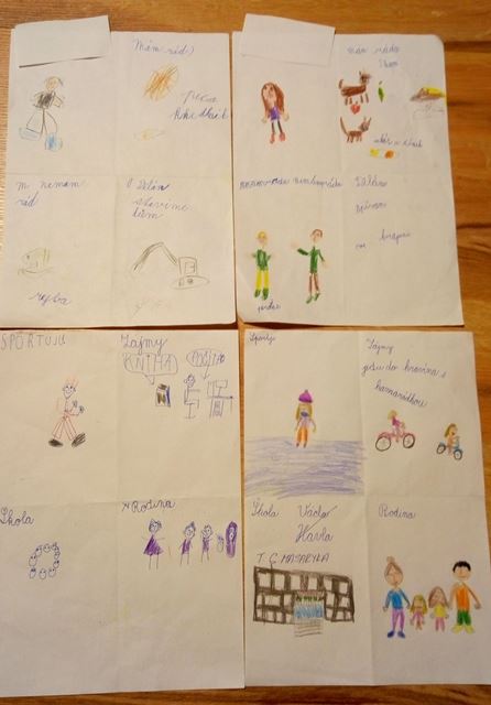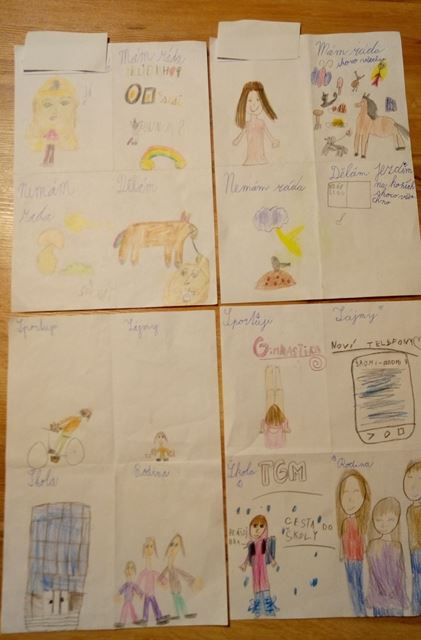 Kdo jsem, co rád dělám, čím se zabývám, kam patřím? Když nestačí slova, pomůže obrázek. Papír rozdělený překladem na 4 díly – z obou stran do vzniklých částí vyjadřujeme svůj názor. Ale to ještě není konec. Pokračujeme v prvouce a ptáme se, jak nás vidí spolužáci. Kde jsme se shodli, kde se lišíme – proč? Otevírá se prostor pro diskuzi – odlišnost a jedinečnost každého z nás.