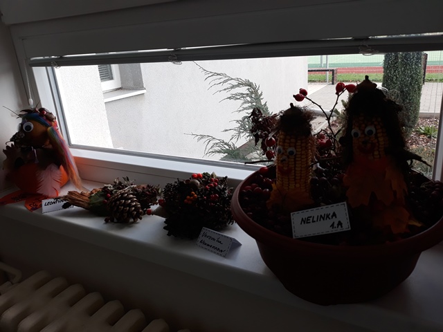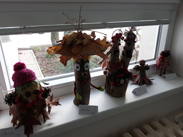Chodbu nám na konci října rozveselily podzimní bytůstky z přírodních materiálů, které děti přinesly do soutěže o NEJ Podzimníčka. Bylo opravdu velmi těžké vybrat toho NEJ.