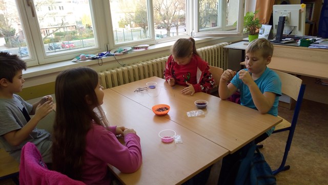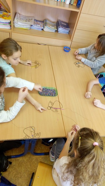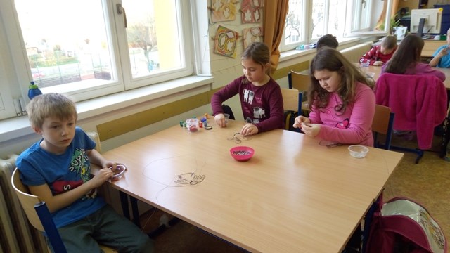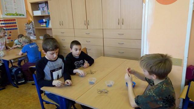 Zkušenost s drátkováním máme již z minulého roku, kdy jsme tvořili srdíčka pro maminky. Letos jsme se pustili do vánočních andělíčků. Lehké to nebylo, ale zvládli jsme to!