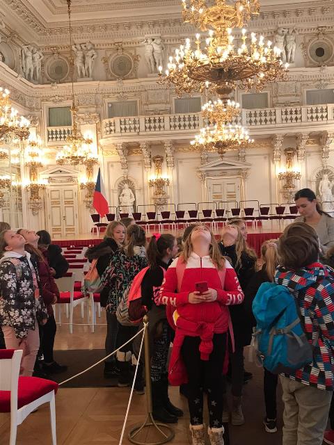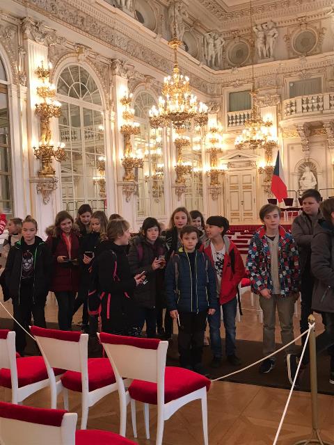 Žáci pátých tříd využili příležitosti Dne otevřených dveří reprezentačních prostor Pražského hradu a navštívili místa, kde se odehrávají nejvýznamnější státní události. Prohlídli si např. Španělský, Habsburský a Trůnní sál, Rudolfovu galerii, Brožíkův salon, Skleněný a Zrcadlový salon a nahlédli do Bílé věže. Seznámili se s ukázkou štědrovečerní tabule rodiny prezidenta T. G. Masaryka a s menu, které se na ní servírovalo.