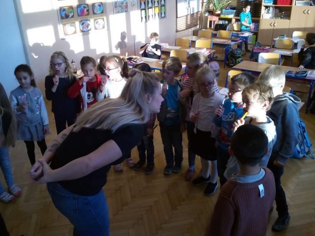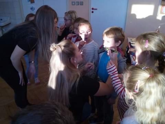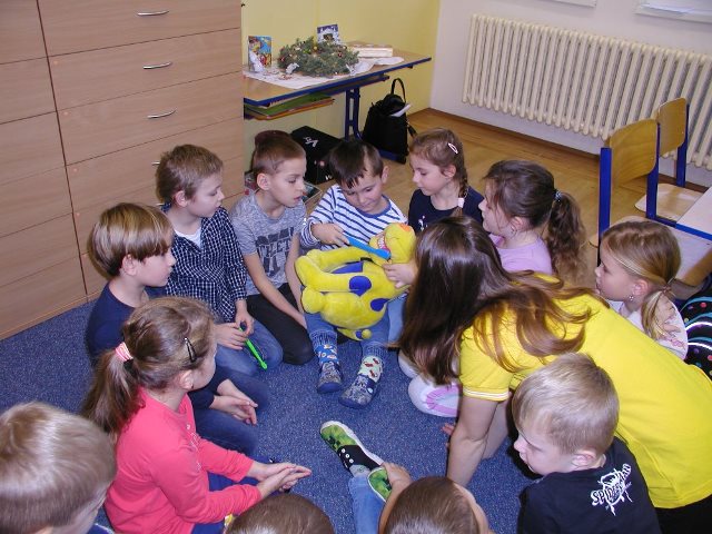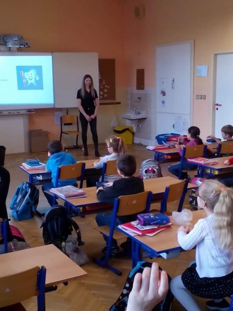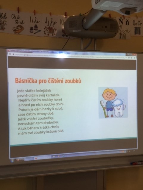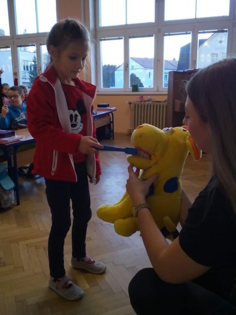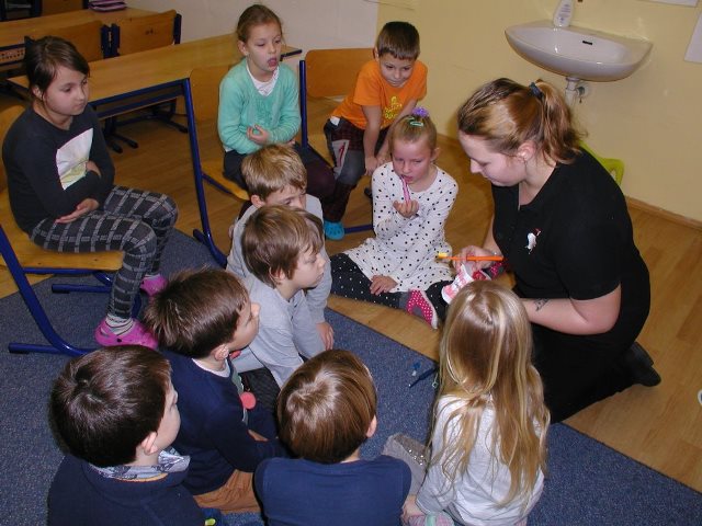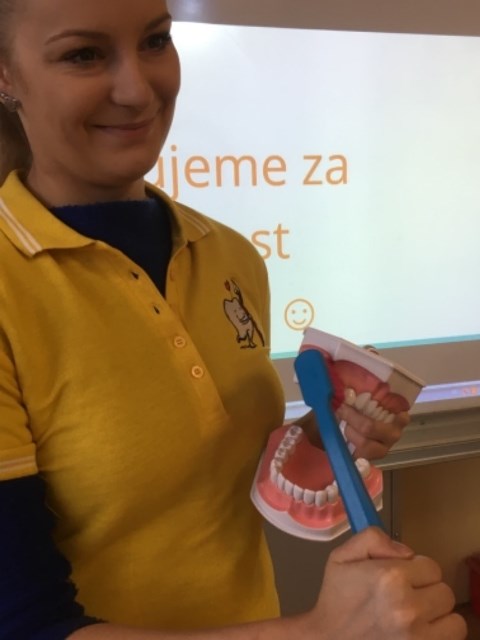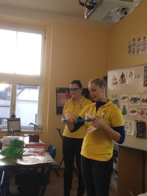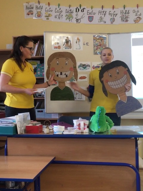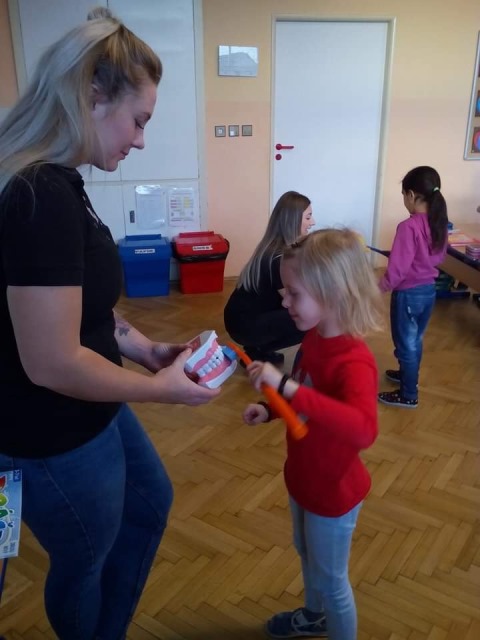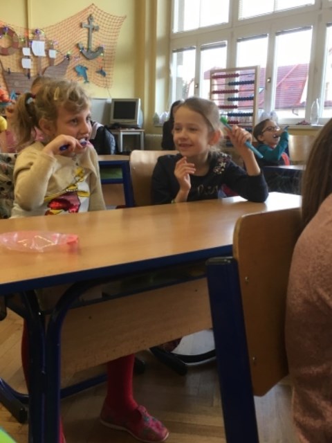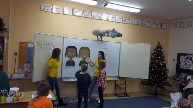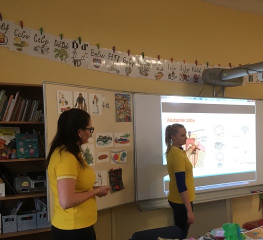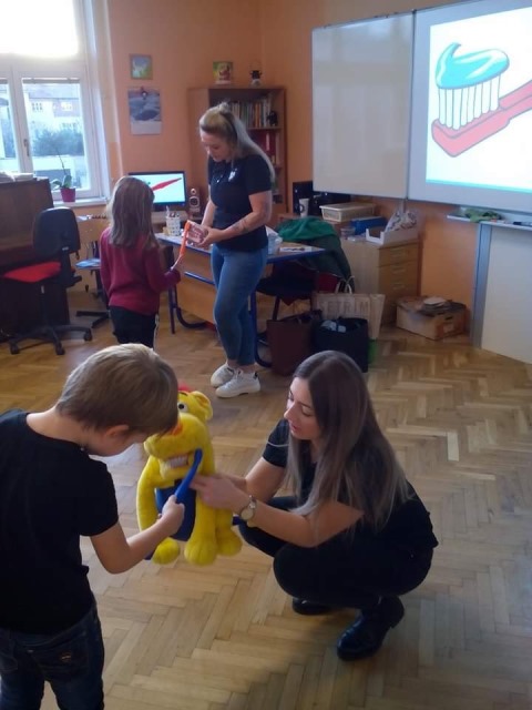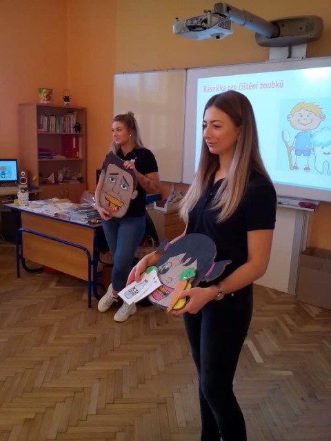 S programem nás přišly seznámit studentky dentální hygieny ze Střední zdravotnické školy v Nymburce, které se připravují na povolání dentální hygienista. Hravou formou si s nimi žáci osvojili, jak předcházet zubním kazům, jak o zoubky pečovat a dozvěděli se velkou spoustu informací o dentální hygieně, o mléčném a trvalém chrupu, o zdravé výživě s ohledem na zuby… Za doprovodu básničky si natrénovali společně správnou techniku čištění zubů a odnesli si praktické materiály a zubní pasty.