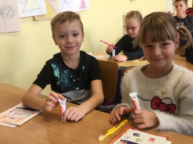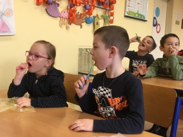 Do projektu, který se zabývá preventivní péčí o zuby, se zapojily všechny naše 1. třídy.