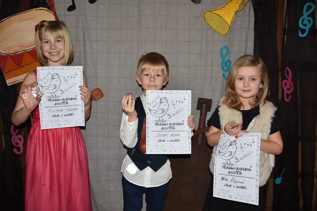 Pak následovalo to nejdůležitější! A to byly výkony našich dětských zpěváků a muzikantů! Děti opět nezklamaly a my je všechny chválíme a děkujeme za příjemný umělecký zážitek. Nebýt Dády v porotě, snad bychom ani nedokázaly rozhodnout o vítězích. Oko a hlavně hudební sluch odborníka se ale snad neplete. Věříme, že vyhráli ti nejlepší. Gratulujeme a přejeme hodně dalších hudebních úspěchů.